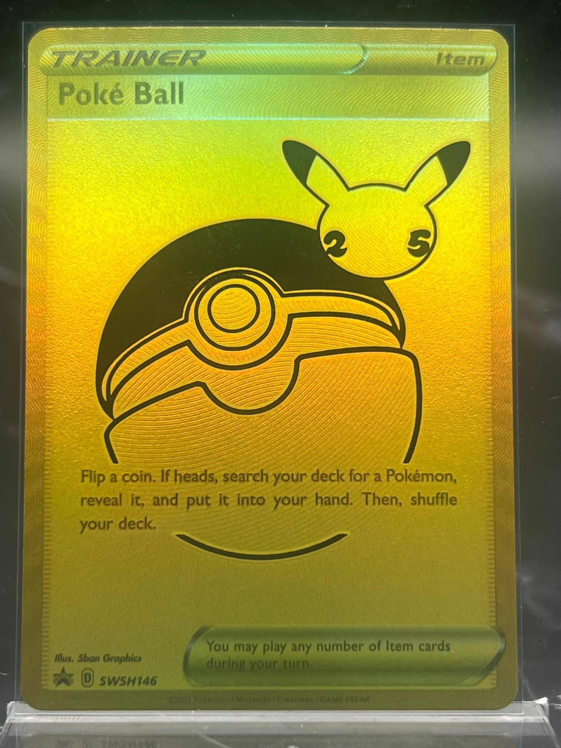 A collectible Poké Ball promotional card from the Sword & Shield series (SWSH146), in Near Mint condition. A great addition for promo card collectors and fans of classic Pokémon items.